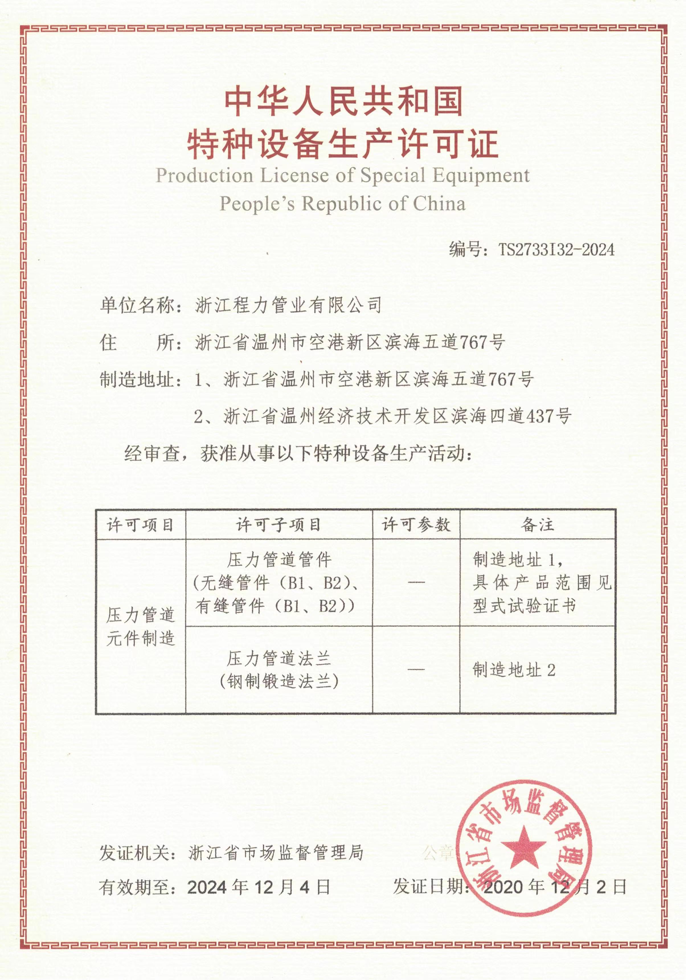 特種設備制造許可證