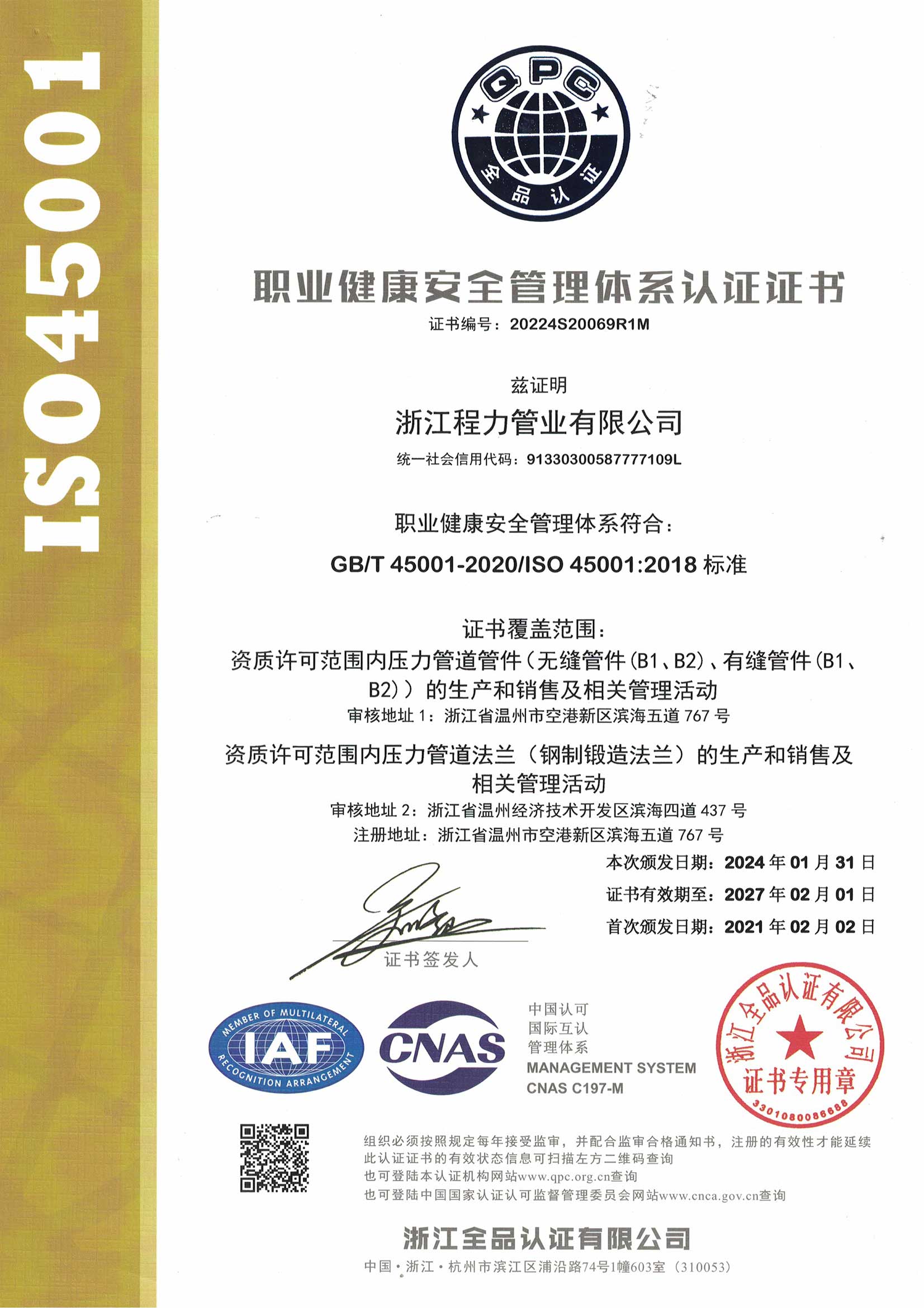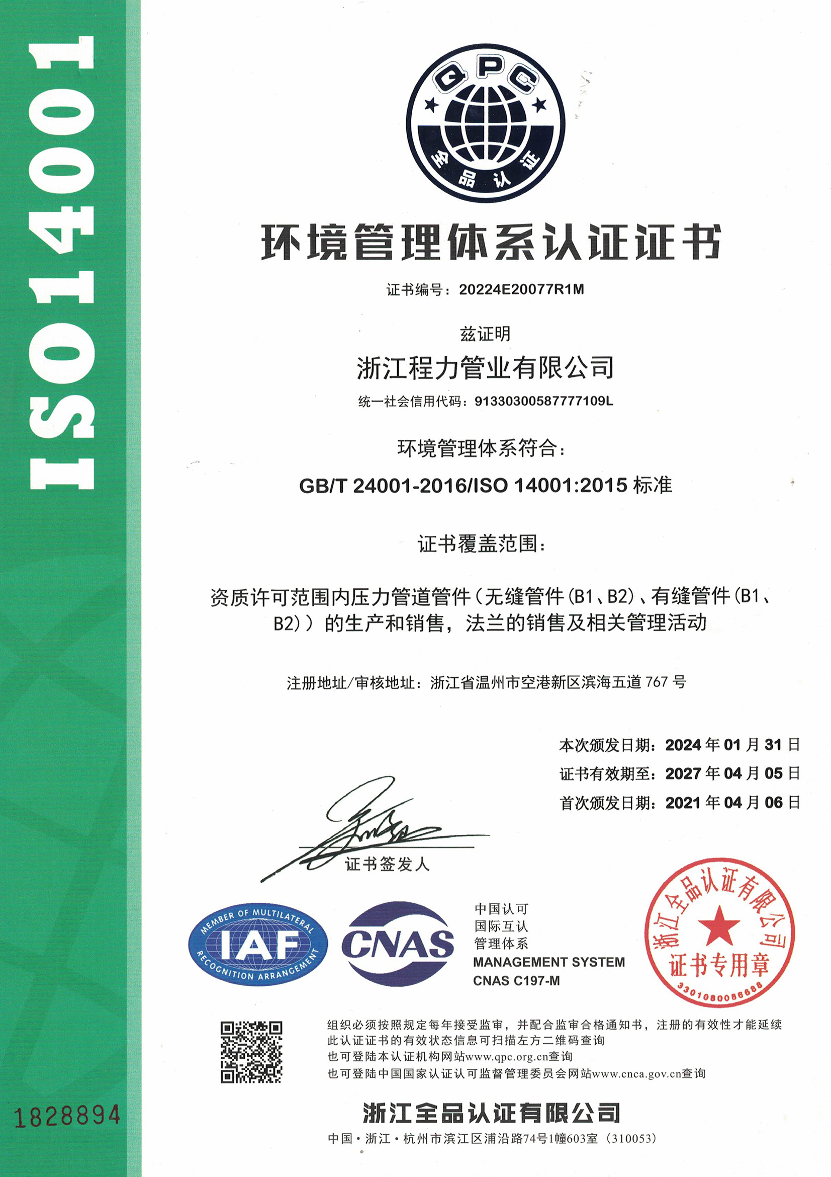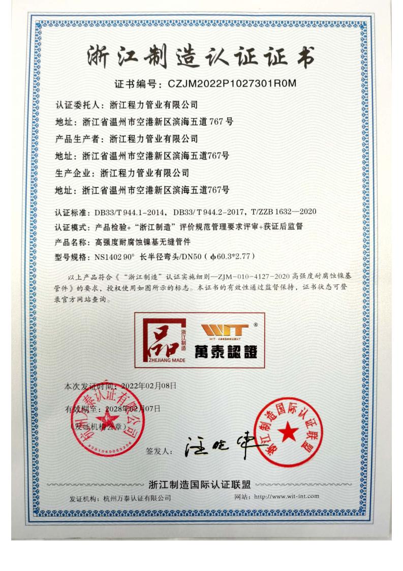 浙江制造認證證書