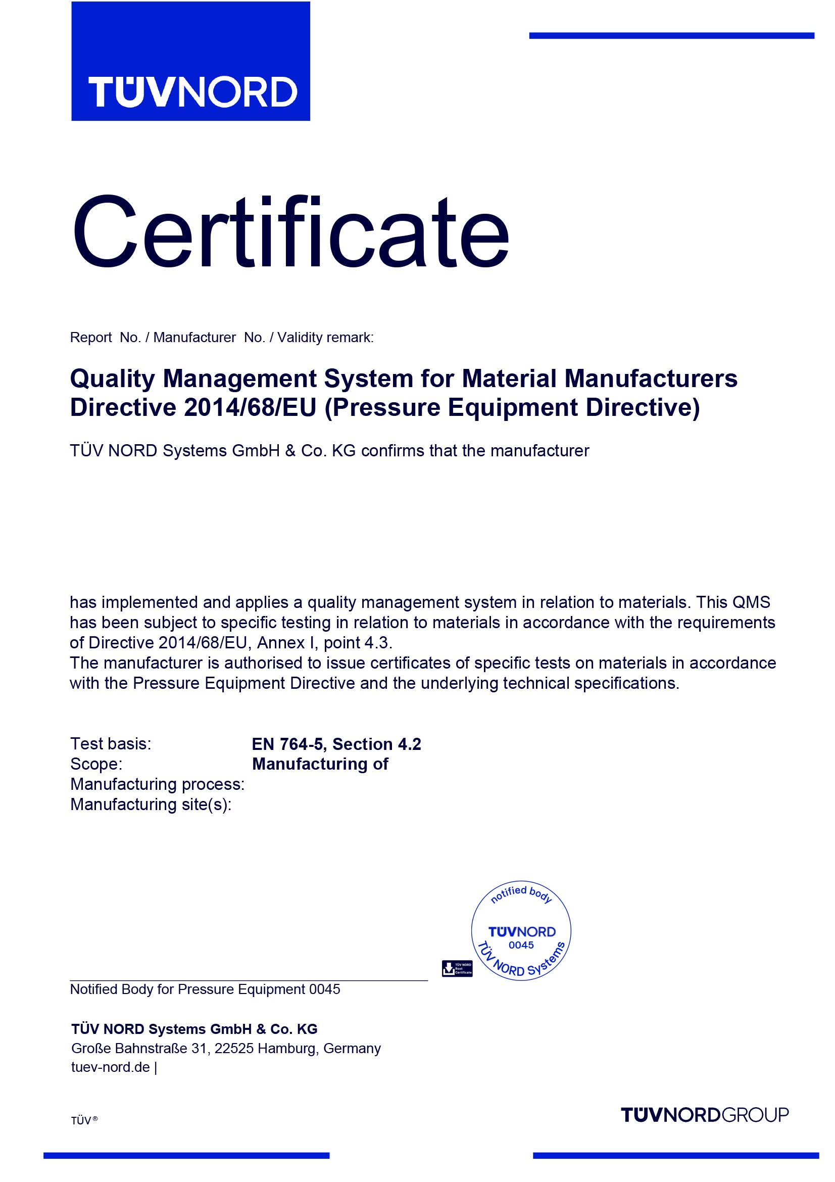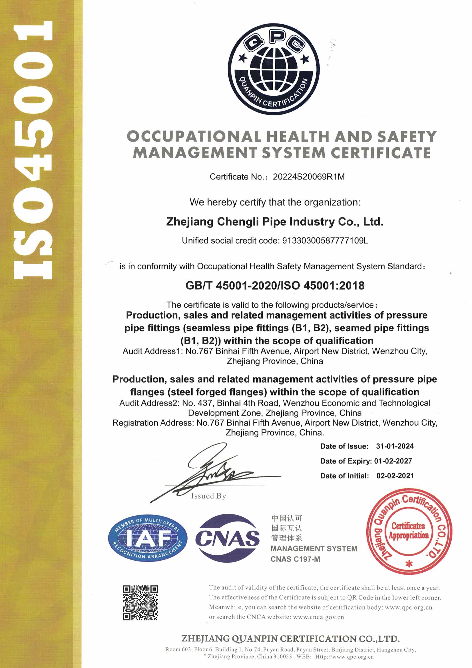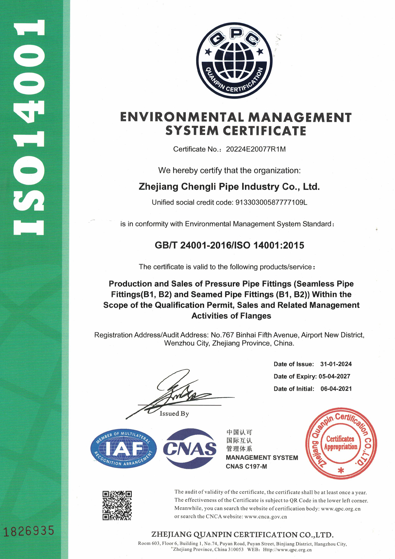 質量管理體系認證證書