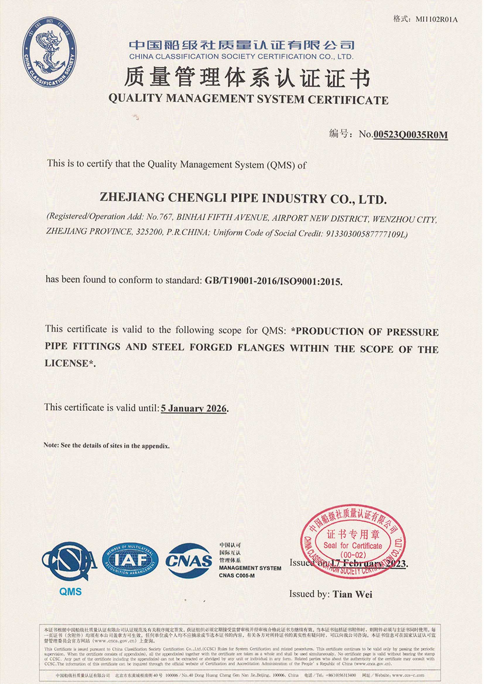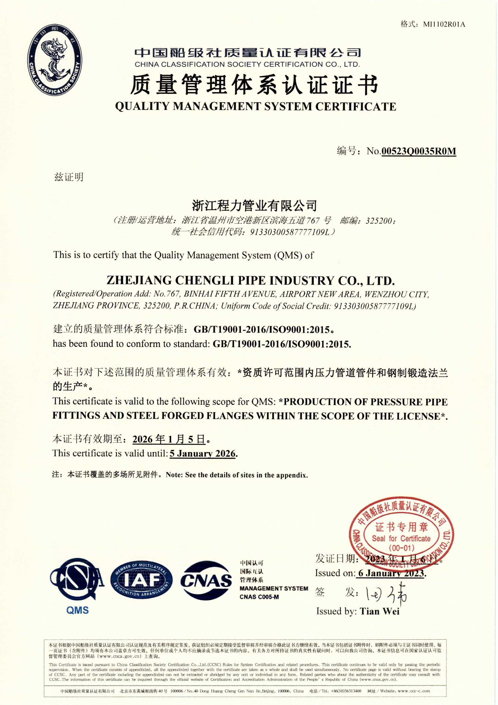 質量管理體系認證證書(英文版)