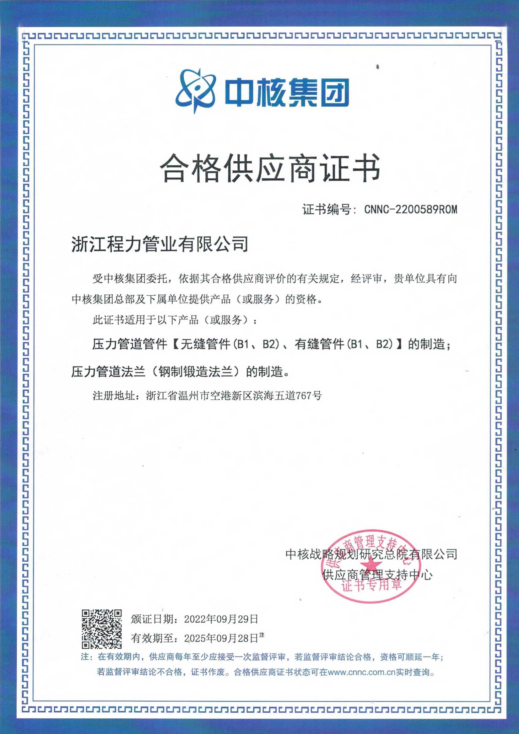 中核證書